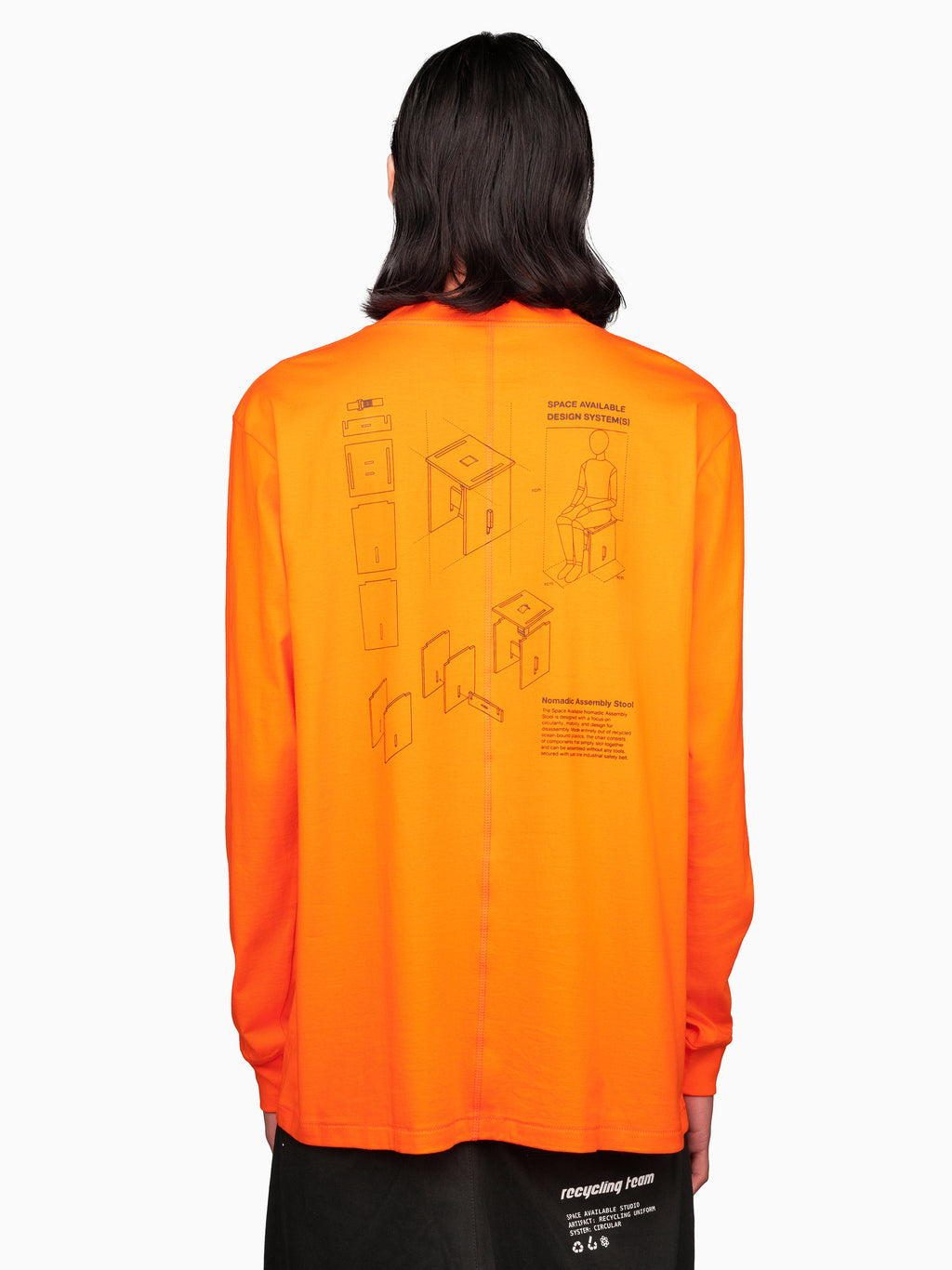 The Nomadic Stool Long Sleeve Tee is crafted from upcycled cotton off-cuts collected from garment factories and screen-printed with water-based ink. Comes with a recycled plastic swing tag that can be reused as a coaster.