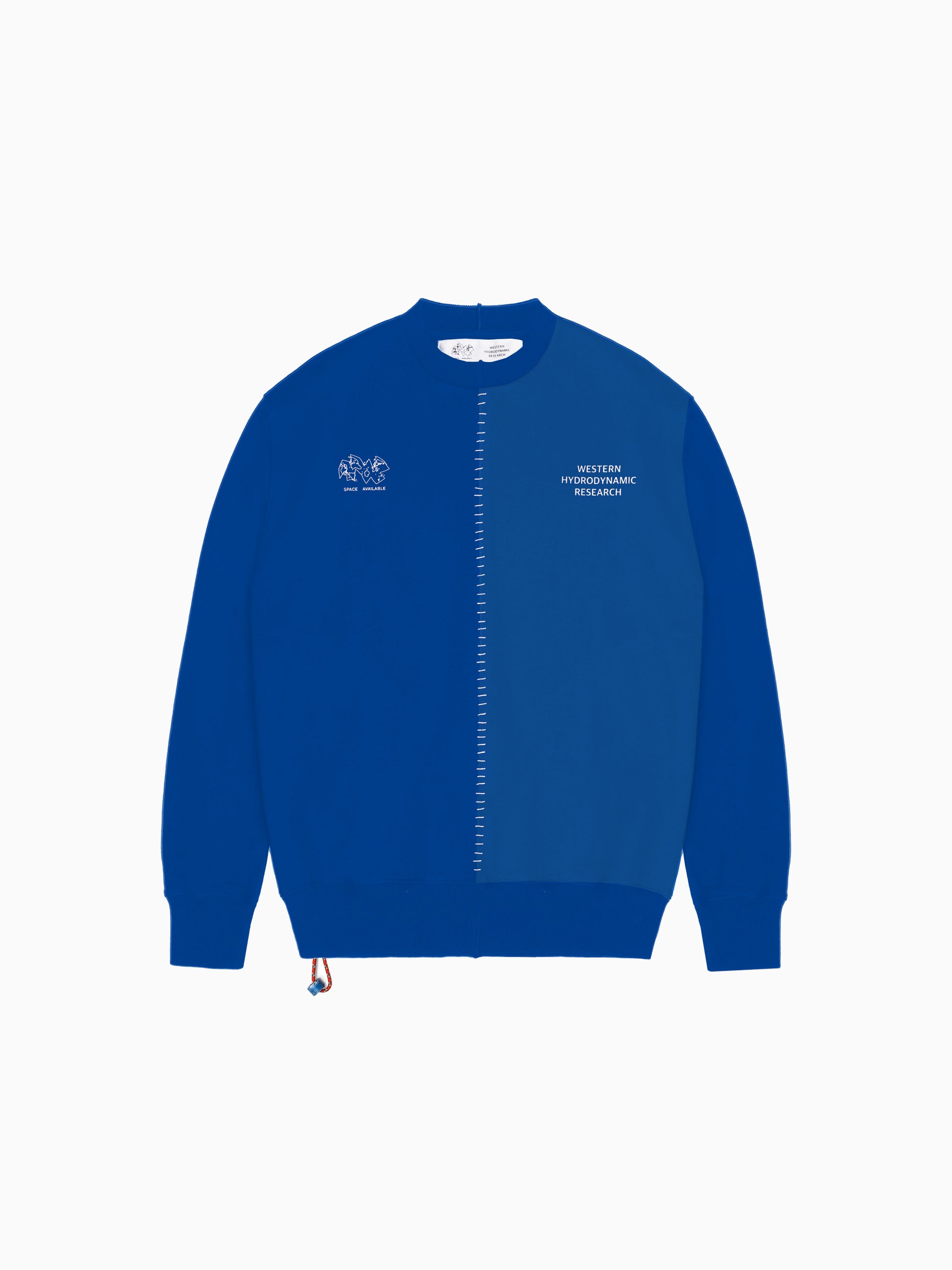 The Space Available x WHR (Western Hydro Dynamic Research) upcycled logo sweatshirt is made from garment factory off-cuts, sourced across Indonesia. Features artisan hand-stitched centre seam, and recycled plastic beads.
